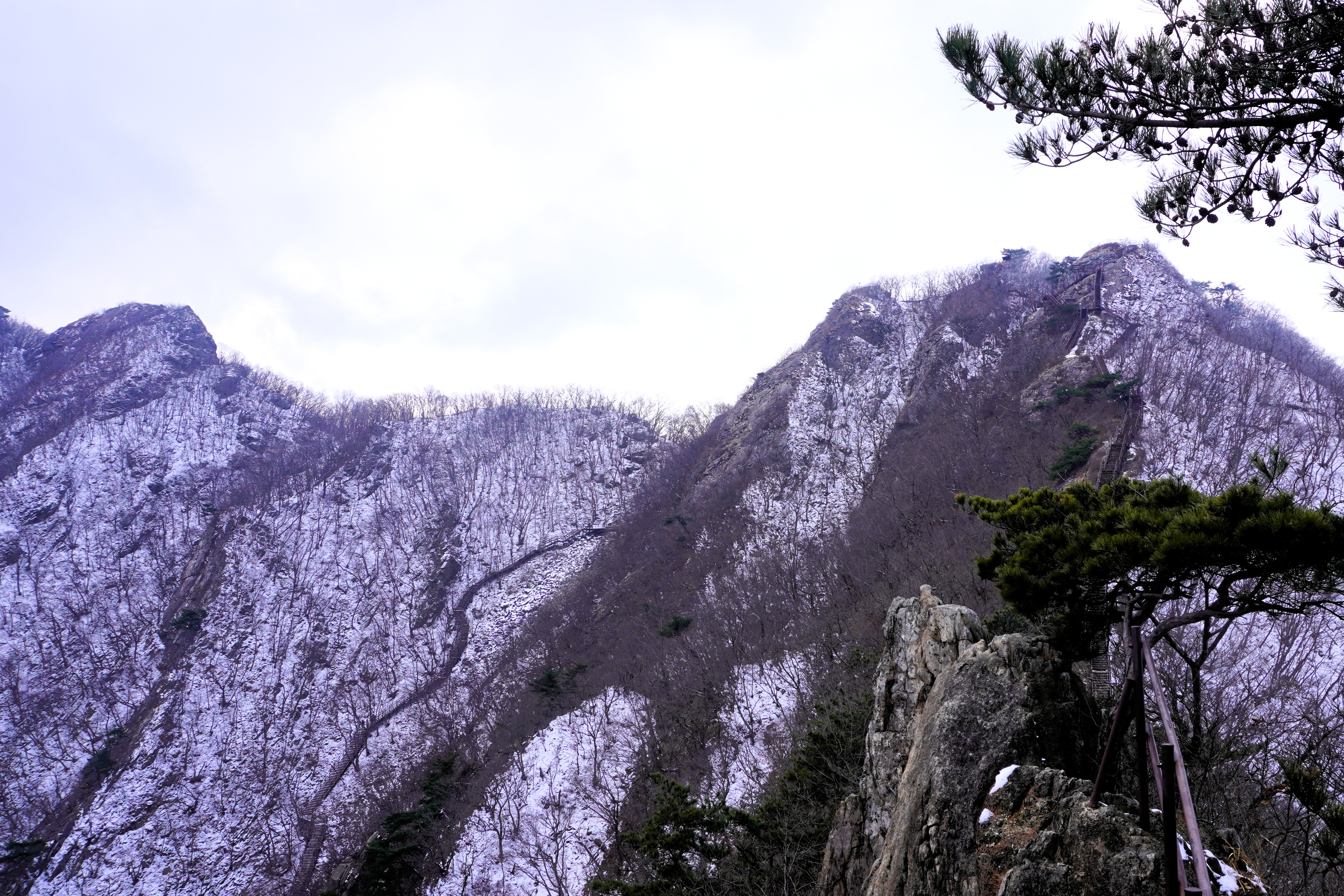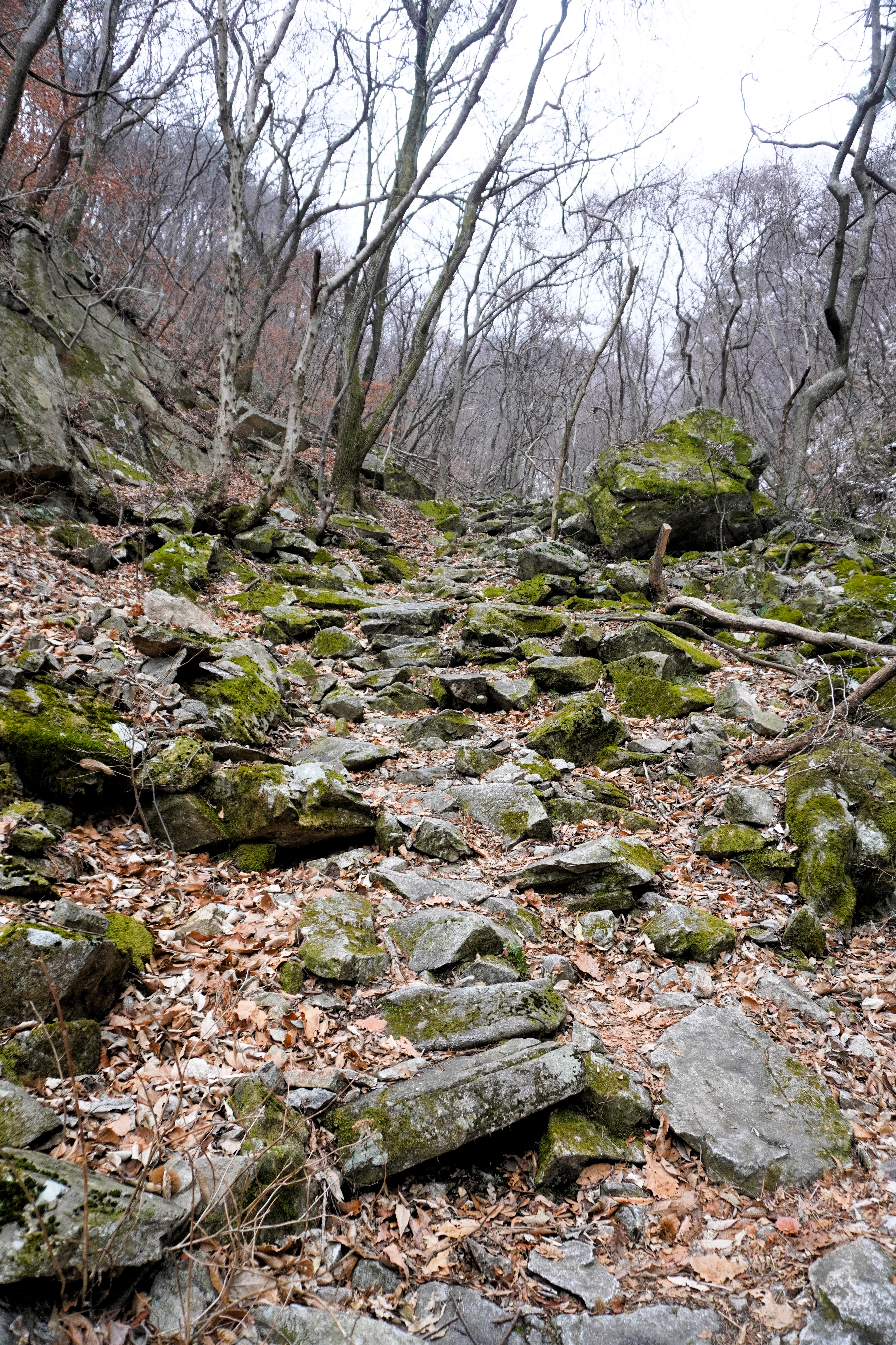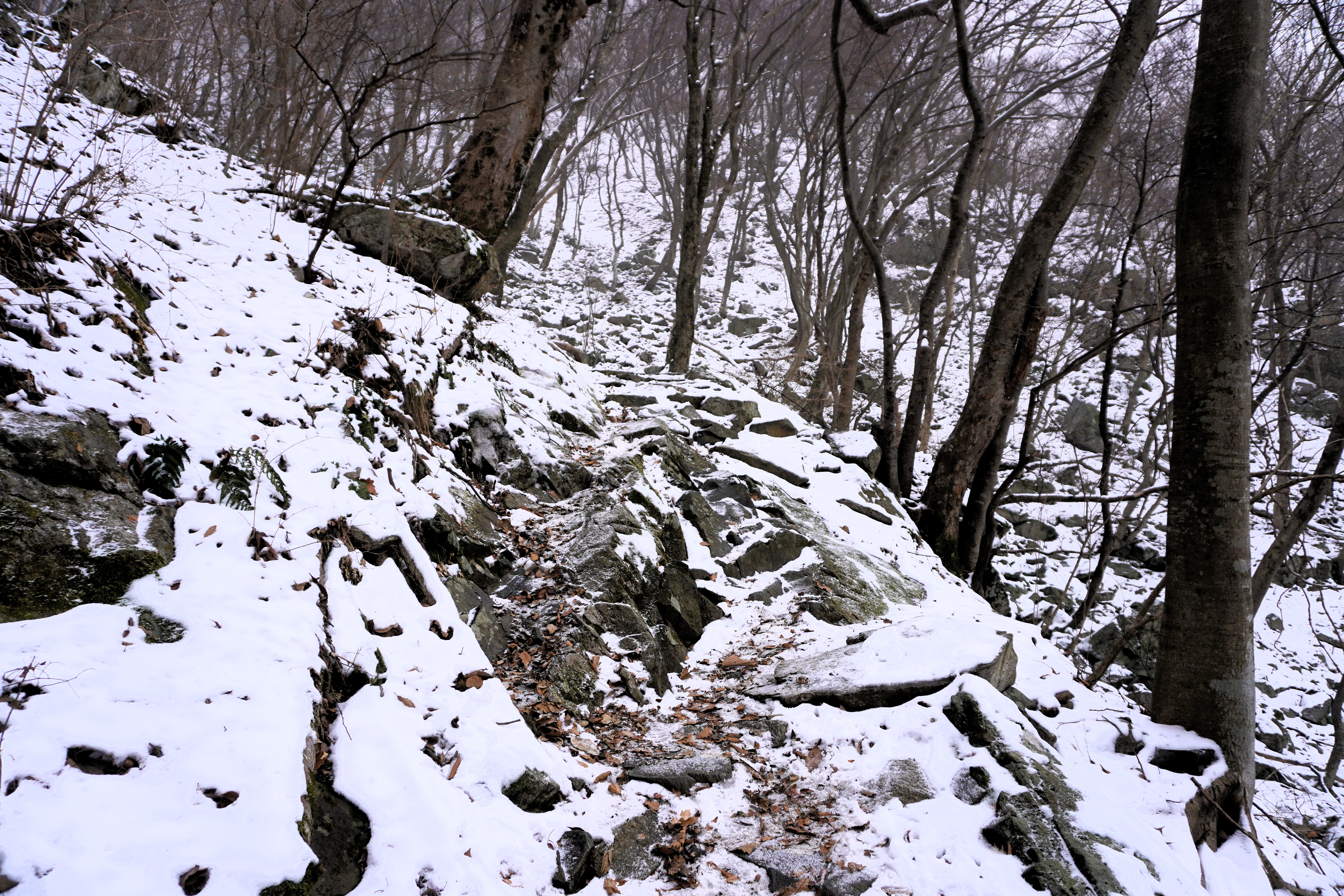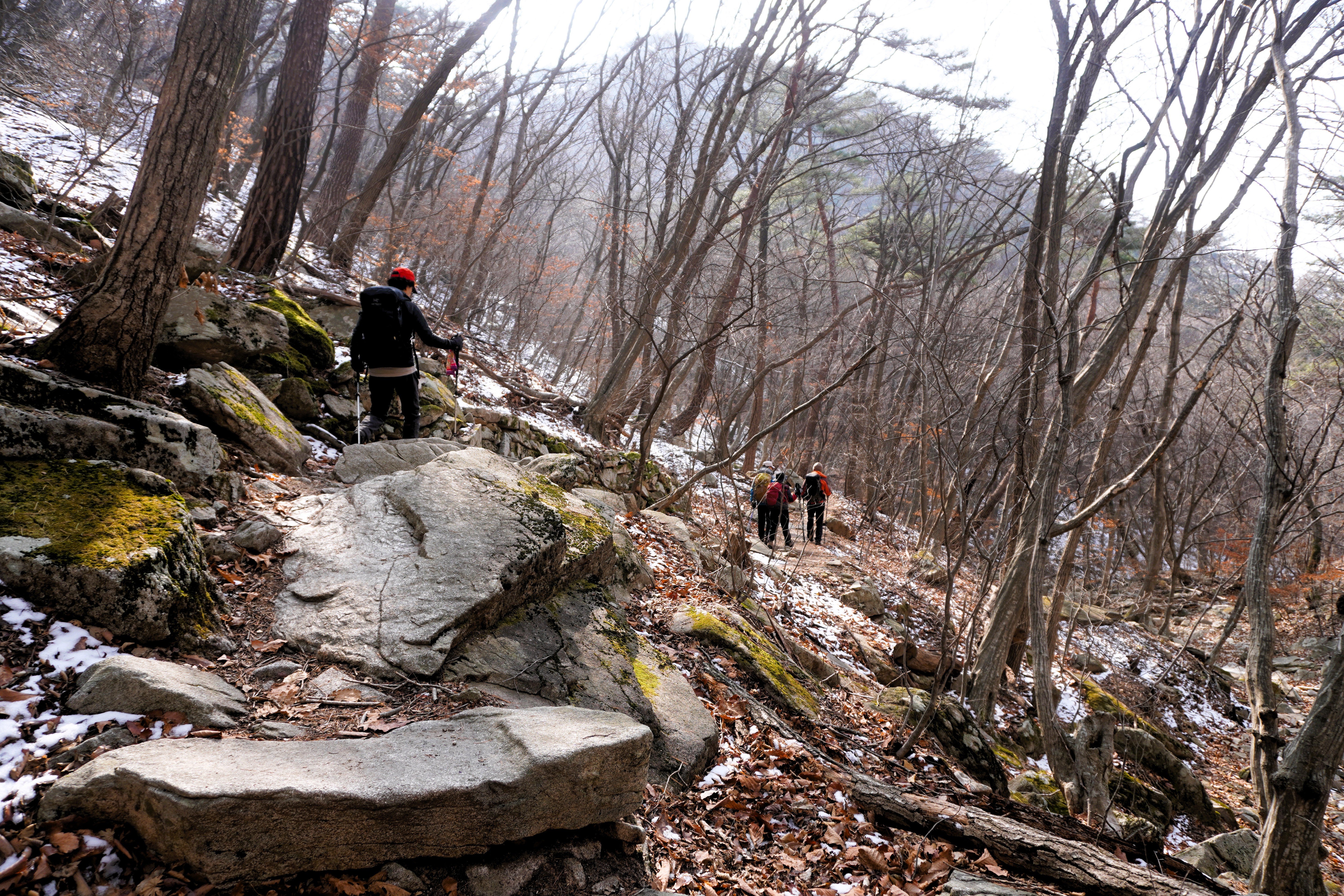 안경에 달라붙은 입김이 얼어 줕어 길을 볼 수 없을 정도였다. 에휴~ 눈으로 덮인 돌 위엔 살얼음도 있는 것 같은데 아이젠을 장착하지 않았으니 최대한 조심할 밖에...