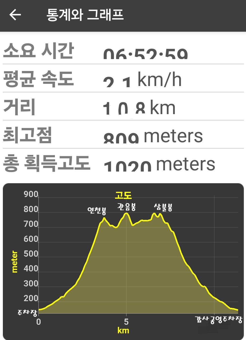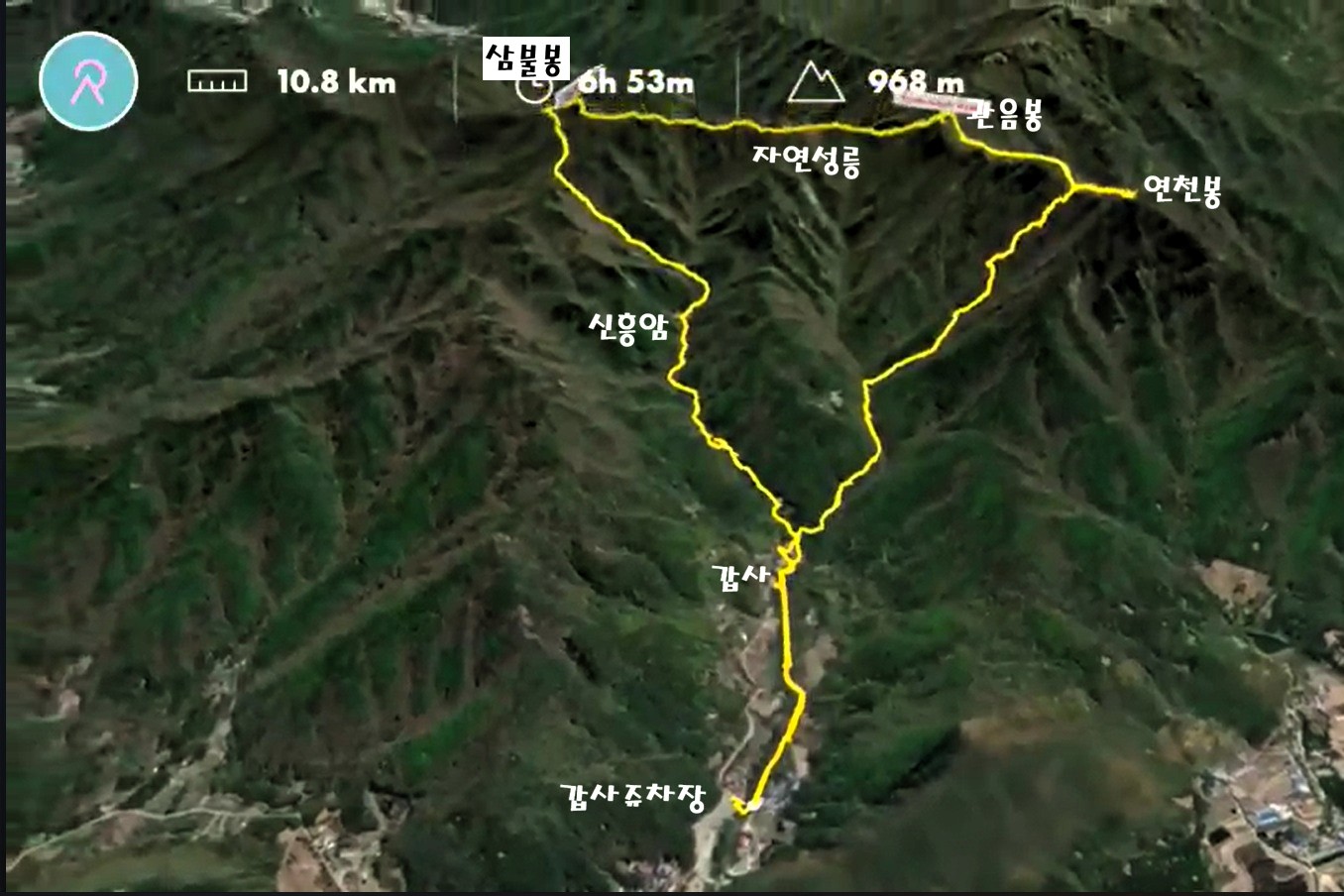 갑사 - 연천봉 - 관음봉 - 삼불봉 - 신흥암 - 갑사 - 주차장으로 원점회귀를 했다.