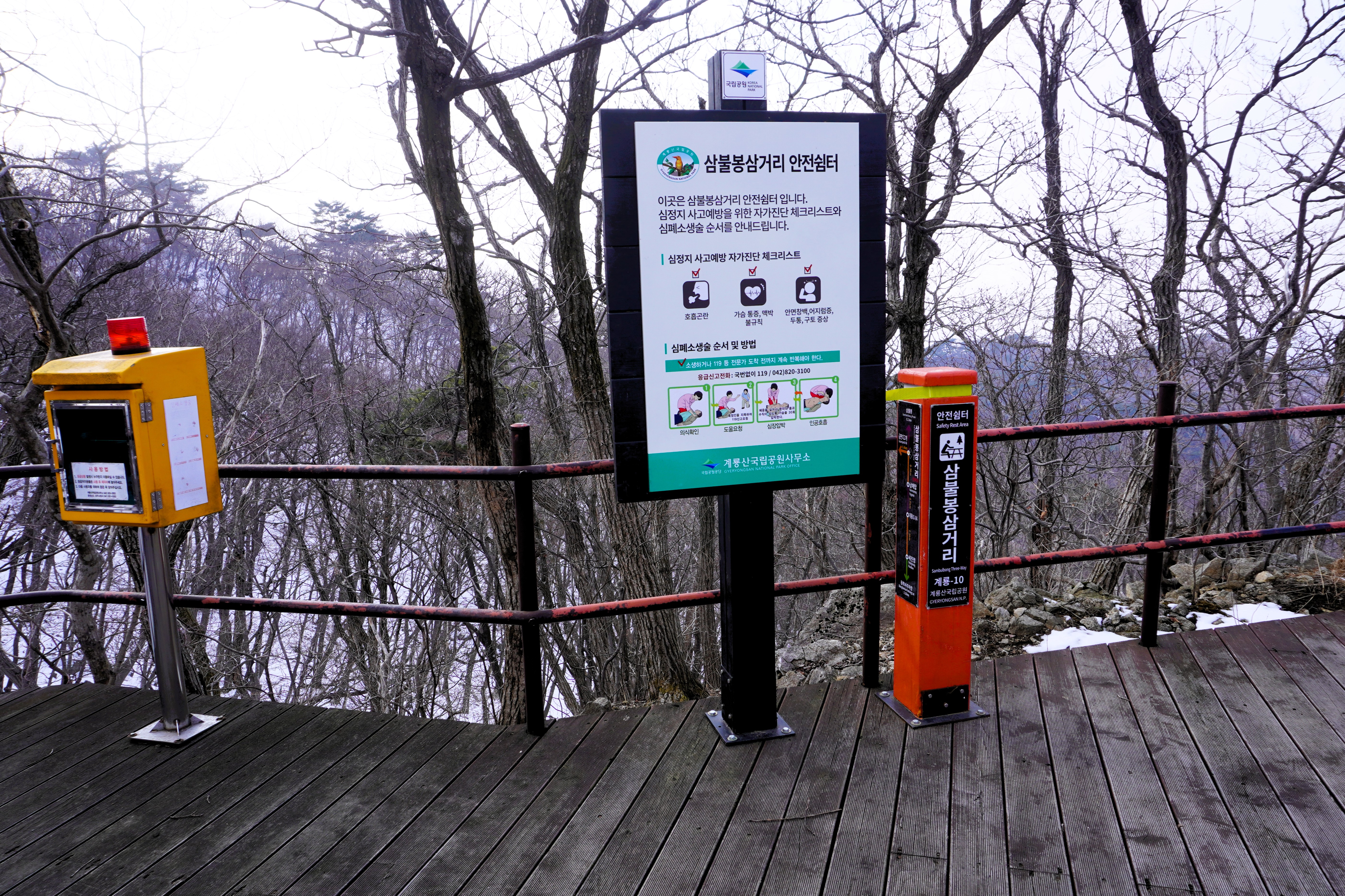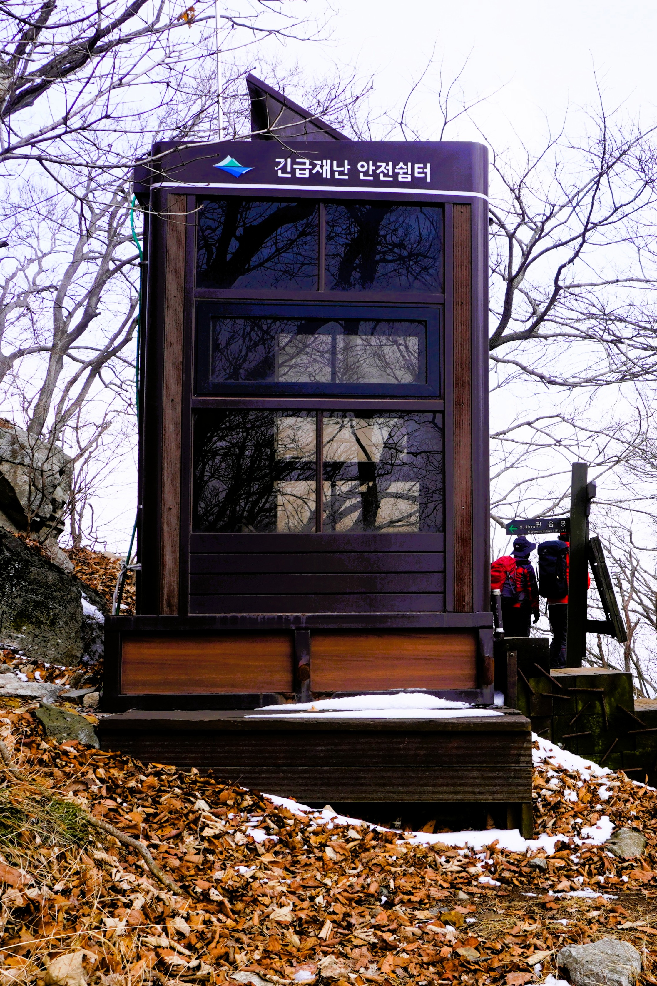 긴급재난 안전쉼터가 보였다. 오른쪽을 보니 관음봉고개란 표지목이 있고... 그 뒤로는 출입금지. 쌀개봉을 가는 길이라 하는데... 뭐 언젠간 걸을 수 있겠지?