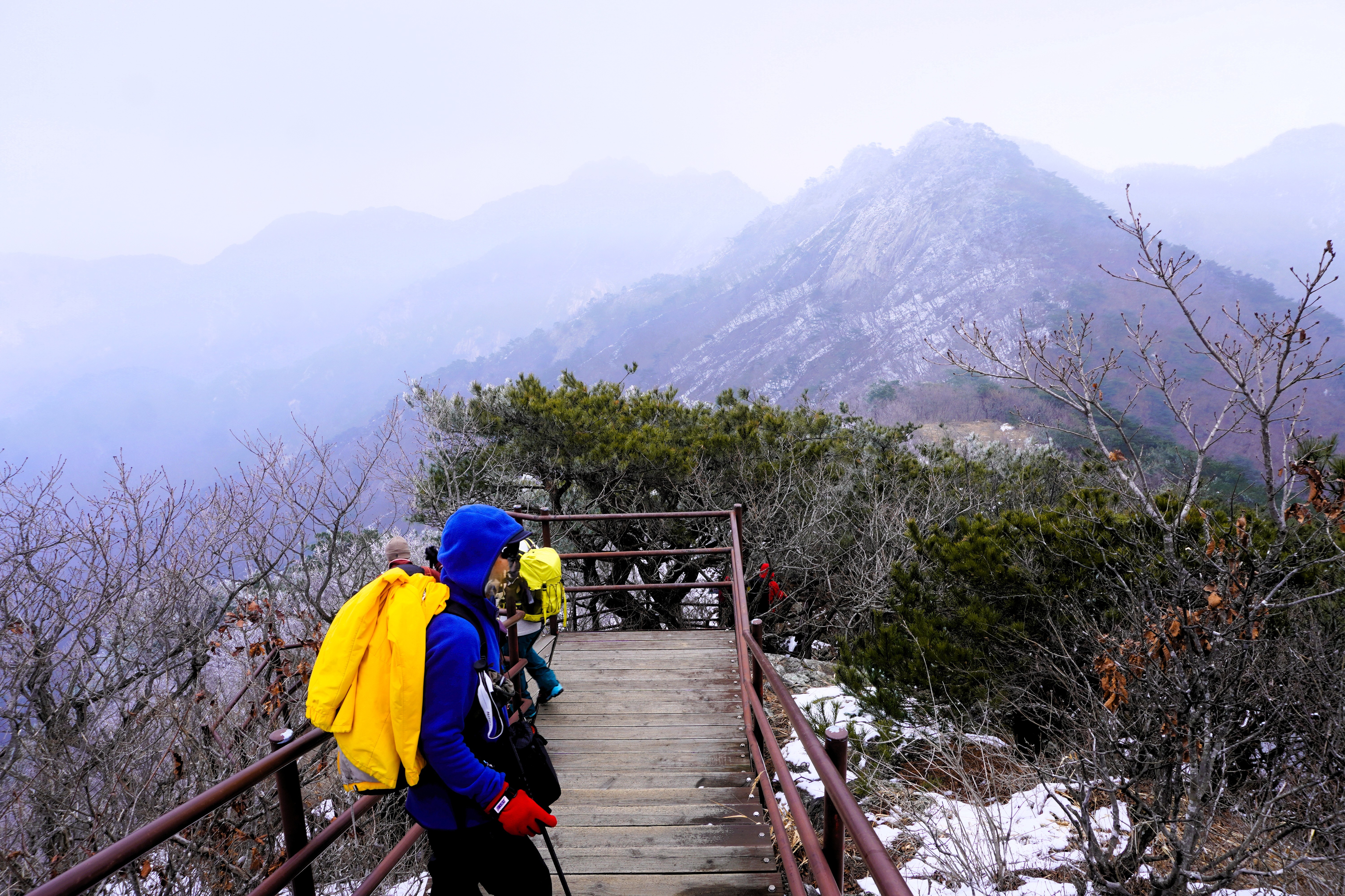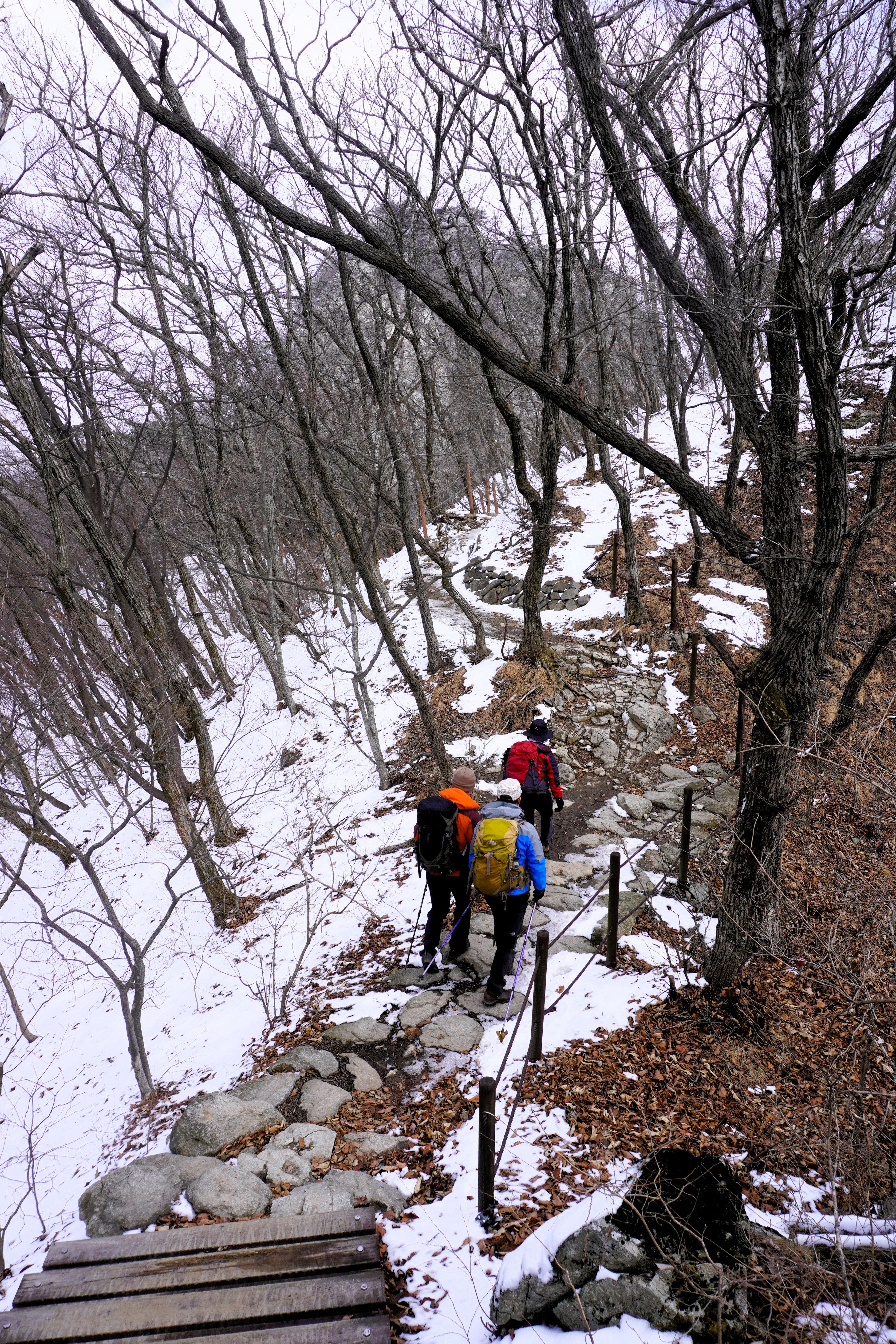 오를수록 눈이 보이더니 점차로 눈의 양이 많아져 가는데, 덩달아 추위가 몰려들기까지 했다.