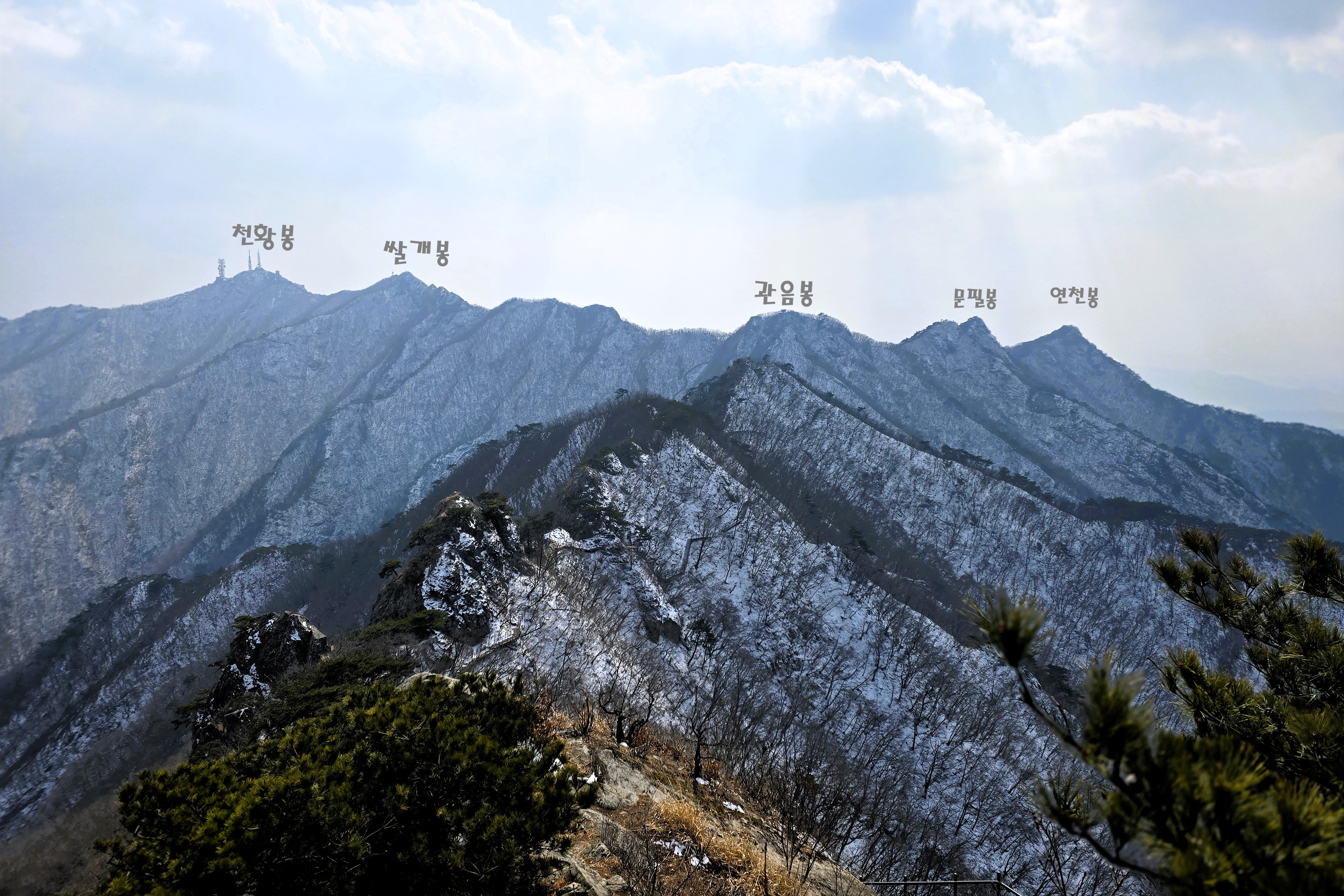 누구나 오를 수 있을 것 같았다. 조선의 운명을 예언한 석각이 유명하고 관음봉에서 쌀개봉과 천황봉으로 이어지는 장쾌한 능선을 감상하는 곳으로도 유명하지만, 지금은 구름이 그를 가리고 있다.